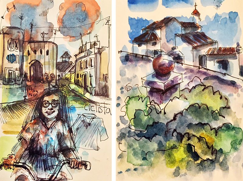 Recette pour préparer les « pimientos », réalisé dans l’avion, j’avais un modèle en photo sur mon téléphone. En dessinant d’après le vraie modèle on peut apprendre beaucoup de choses et un jour être capable de les dessiner sans modèle… mais pour moi ce n’est pas une priorité de savoir tout dessiner par cœur, car j’adore observer et expérimenter de nouvelles choses.